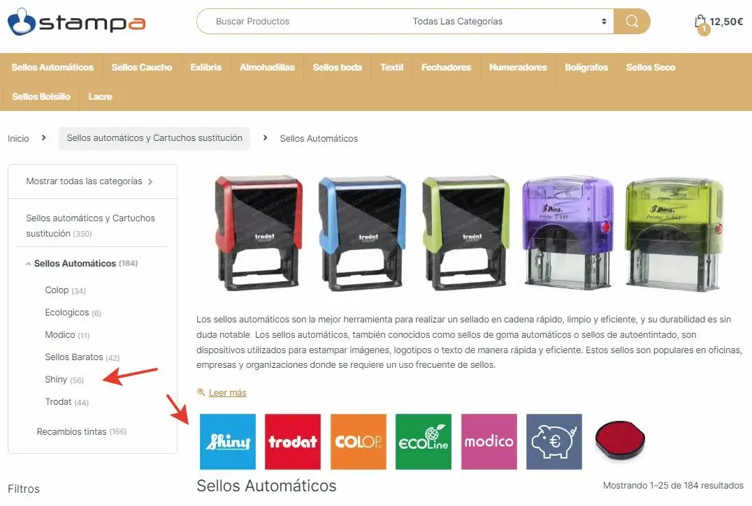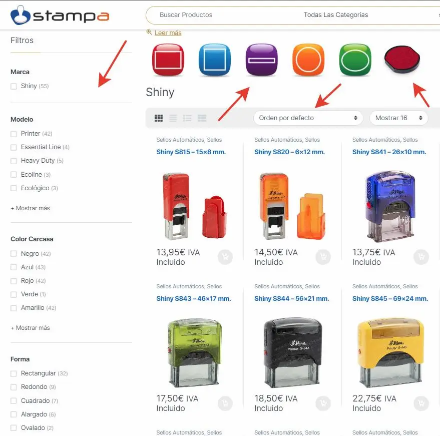 Puede hacerlo accediendo al catálogo de sellos Shiny Stamp como hemos mencionado anteriormente y ordenar los productos por precio y filtrando a su gusto para localizar los modelos más económicos y baratos que se ajusten a sus necesidades.