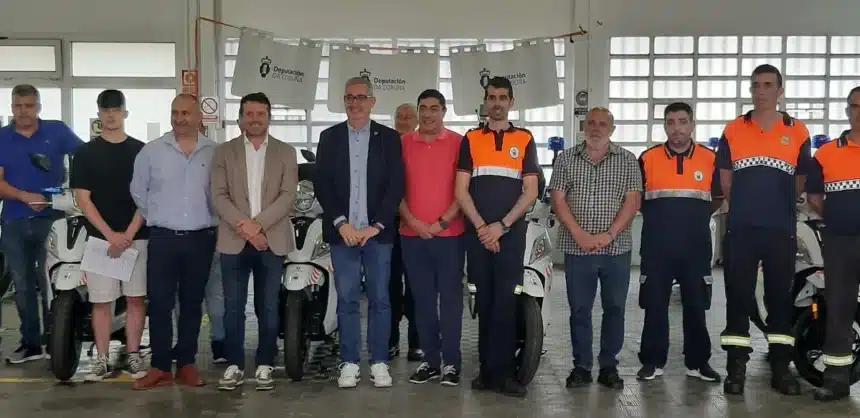 O deputado en funcións de Promoción Económica, Blas García, entregou un lote de dez scooters adquiridas pola Deputación da Coruña a outras tantas agrupacións de Protección Civil de concellos da provincia.