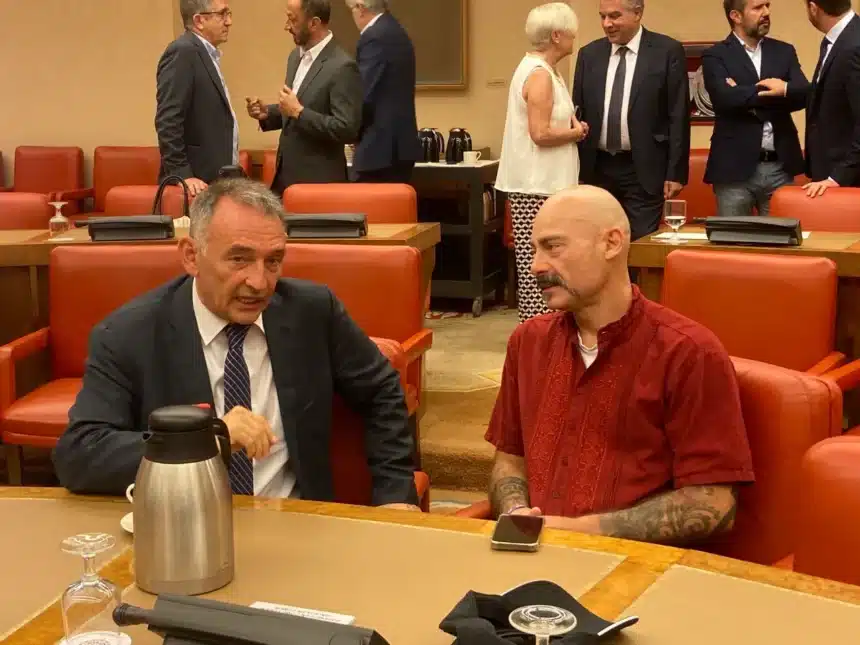 El portavoz parlamentario de Izquierda Unida y recién elegido diputado de la coalición Sumar por Córdoba asegura en los pasillos del Congreso en alusión a la formación de Núñez Feijóo que «un partido que pretende quitarle el nombre de Marcelino Camacho a una plaza es evidente que no ha entendido que hay un espacio muy grande en España, que es de tolerancia, y que desde luego ellos no lo quieren representar»