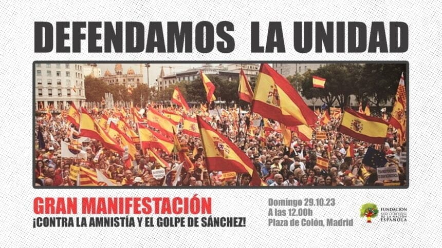 La convocatoria de Denaes llama a una “Gran Manifestación” en la Plaza de Colón de Madrid alertando de que “Pedro Sánchez está poniendo en grave peligro la unidad de España, y bajo el lema “¡No a la amnistía! ¡No al golpe de Sánchez!”, convoca a todos los españoles para defender la unidad, la igualdad y el Estado de Derecho.
