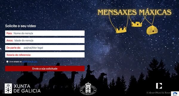 «Mensaxes Maxicas» es una experiencia navideña única que permite a los niños gallegos conectarse con Sus Majestades, a través de la plataforma www.mensaxesmaxicas.com desde cualquier dispositivo móvil