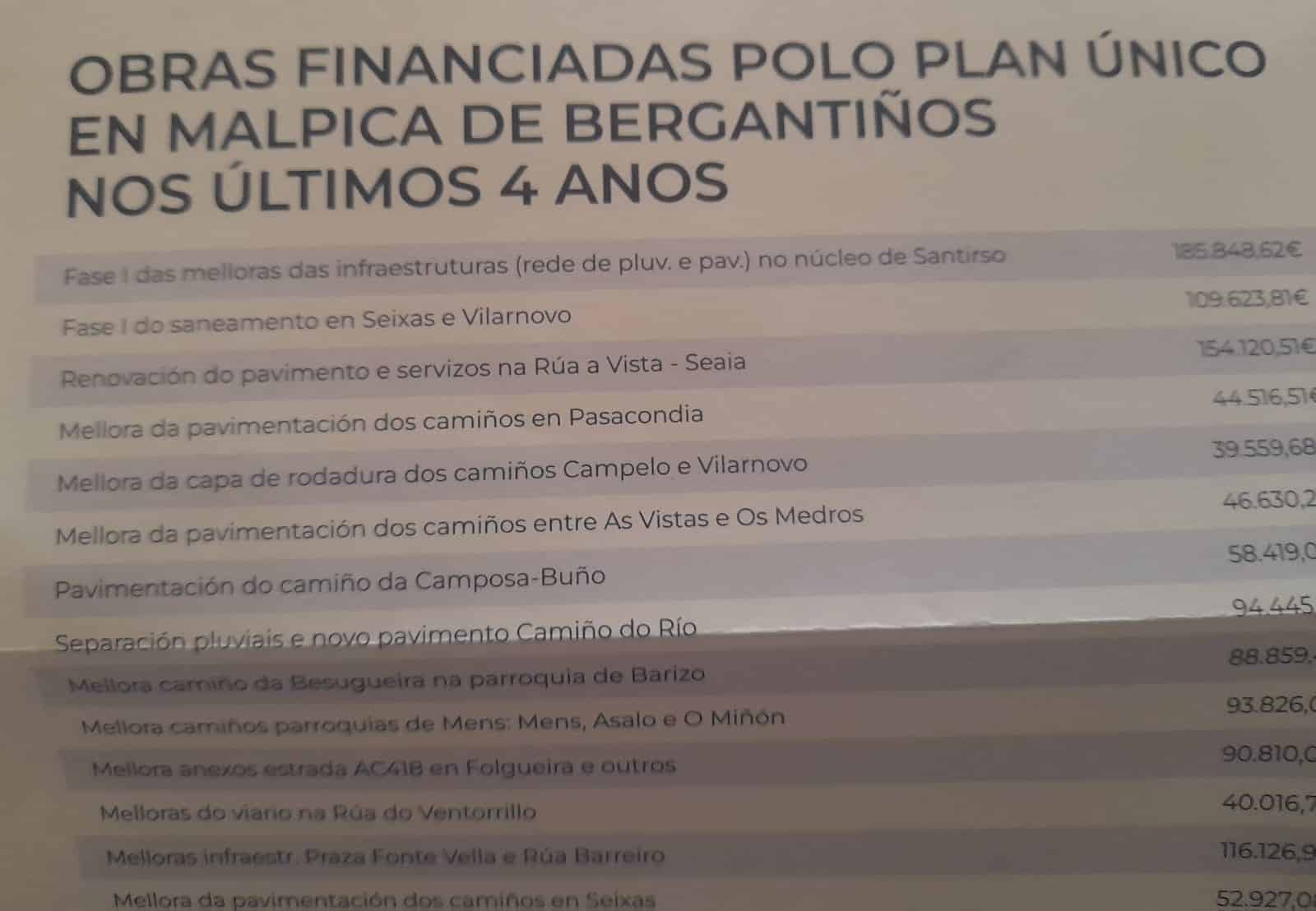 Chega polo día dos santos inocentes unha carta informativa os fogares dos veciños de Malpica de Bergantiños que remite A Deputación de A Coruña co desglose epistolar deses máis de catro millóns de euros investidos neste concello coruñés nos últimos catro anos.