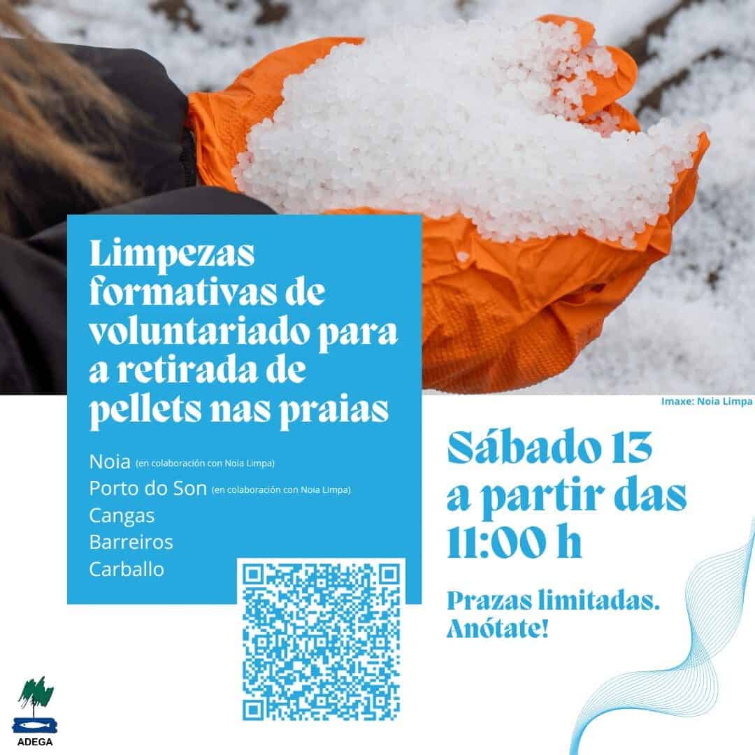 A asociación ecoloxista ADEGA convoca á poboación galega a participar en xornadas de formación para a limpeza da marea de pellets de microplástico procedentes que asola a costa galega. As saídas convocadas por ADEGA estarán orientadas especialmente a formar a persoas voluntarias que queiran exercer labores de coordinación de grupos ou colectivos que acudan aos areais para eliminar voluntariamente pellets de microplásticos, así como outro tipo de residuos que se atopan habitualmente nos nosos areais. O carácter formativo das saídas responde á necesidade de achegar ao voluntariado instrucións precisas e claras de como se debe de actuar para realizar unha limpeza adecuada do lixo mariño e, particularmente, dos pellets de microplástico que nestes días chegas ás nosas costas.