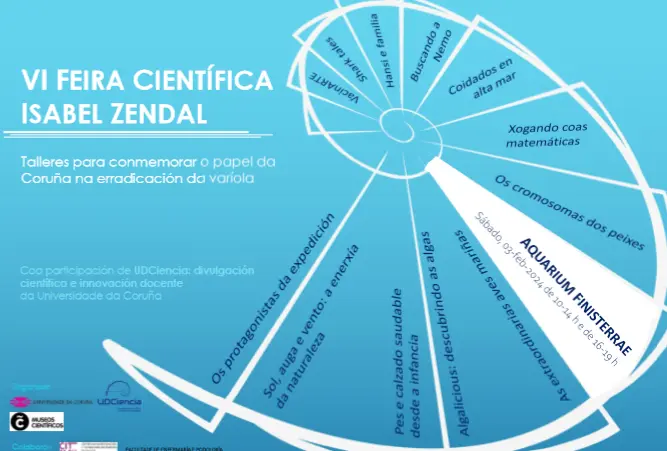 Mañá sábado, día 3 de febreiro, de 10:00 a 14:00 e de 16:00 a 19:00 horas, terá lugar no Aquarium Finisterrae a sexta edición da Feira Científica Isabel Zendal. O evento está organizado polo grupo de divulgación científica e innovación docente da Universidade da Coruña, UDCiencia d+i, da Facultade de Ciencias e o Aquarium Finisterrae, xunto coa colaboración da Facultade de Enfermería e Podoloxía do Campus Industrial de Ferrol e o Centro de Investigación e Tecnoloxía Matemática de Galicia (CITMAGA).