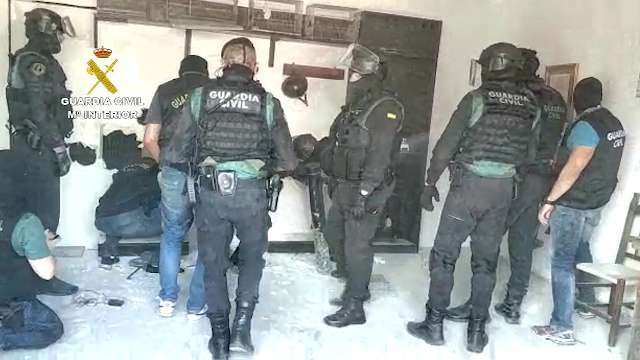 El operativo se ha saldado con la detención de tres personas, una de ellas de nacionalidad inglesa y propietario de la vivienda y dos vehículos de carga, uno de ellos sustraídos.