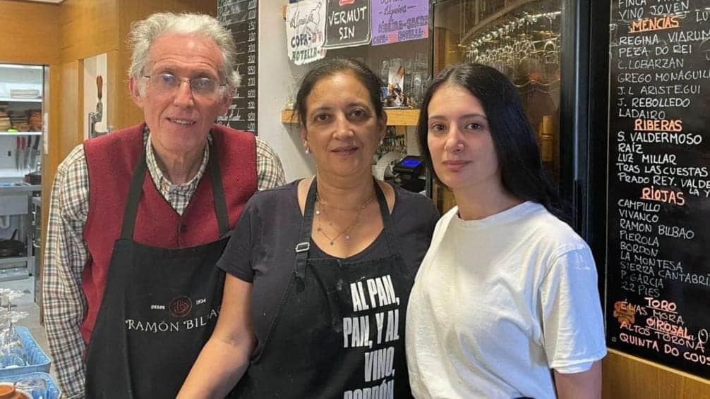 Maite, Salvador y la avispada y dispuesta Gema, la hija de ambos, nos han dispuesto una laconada gallega exquisita, perfecta de precio y completísima de ricas viandas. Más vale una foto que mil palabras, te emplazo, lector, a que visualices los excelentes condumios de la jornada.