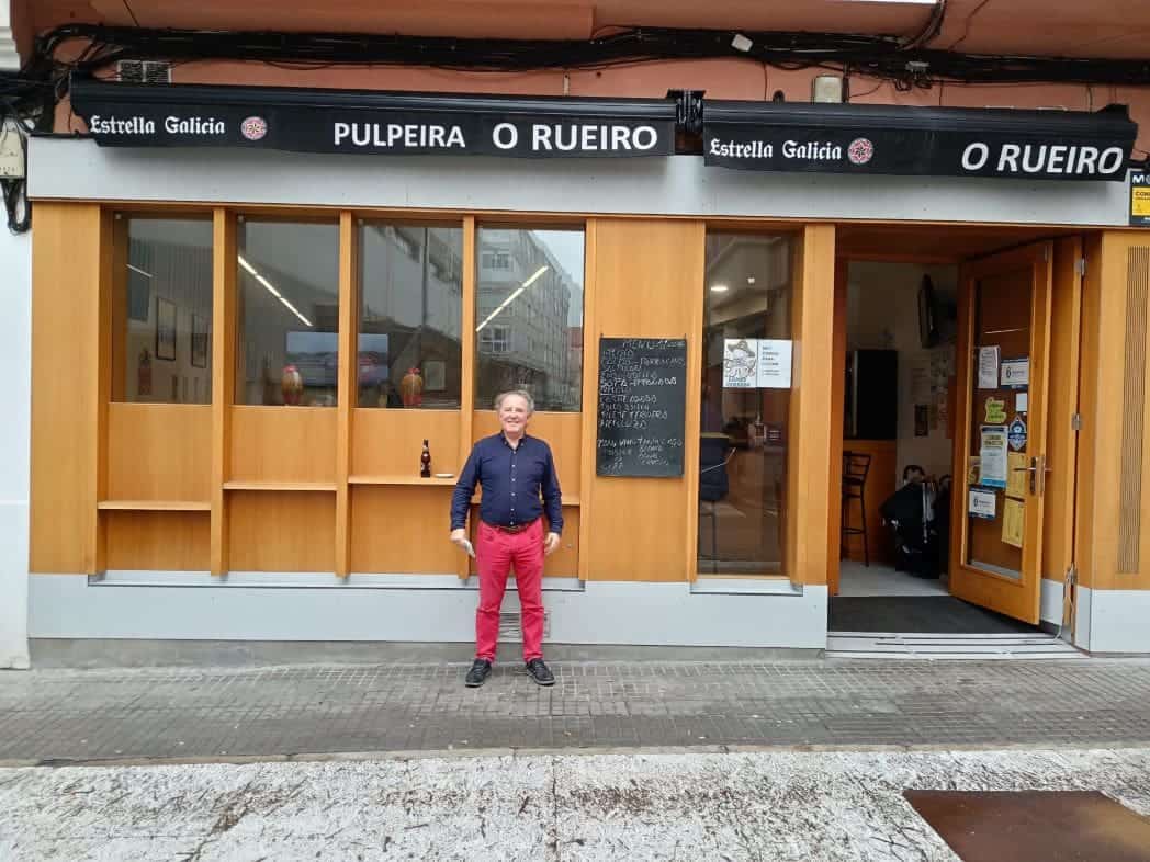 Antes de entrar directo a las perolas y platos, permíteme, querido lector, que sigues mis crónicas gastronómicas, que te explique lo que es un RUEIRO, que así es el nombre de la pulpeira donde hemos comido hoy unos camaradas en franca y noble pantagruélica sesión.