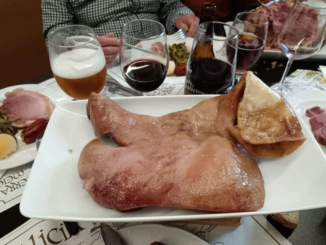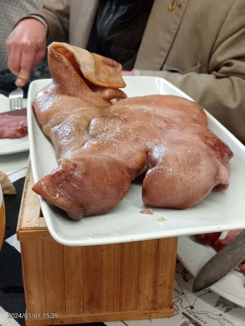 Según nos tocó la parte a nuestro Comandante agasajado hoy y a mí personalmente, lo más sabroso es el «fuciño», o sea, el hocico.