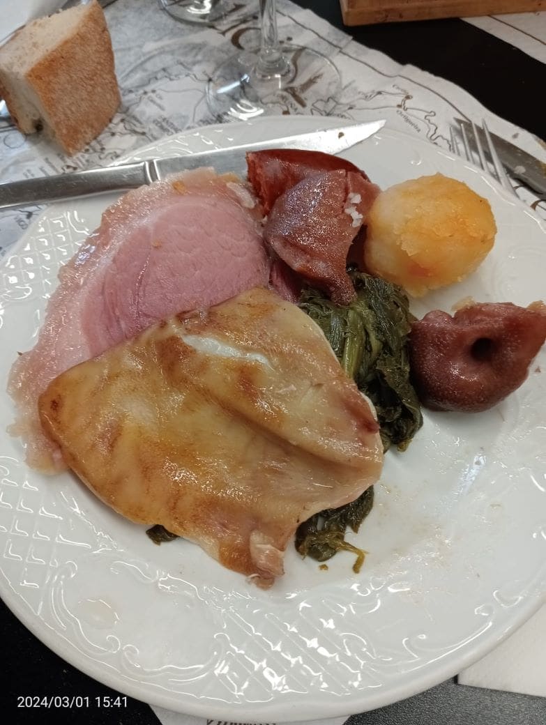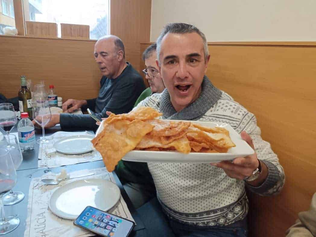 Nosotros le atacamos a todo. Mil sabores que culminaron con abundantes orejas de Carnaval y las filloas más típicas de Galicia: las hechas de CALDO del cocido de las carnes en una crema o AMOADO especial galaico. Las otras versiones tiran a crepes o arepas.
