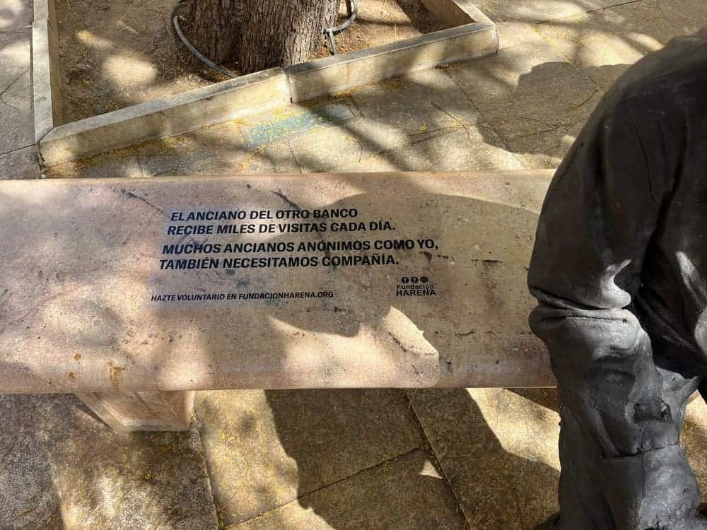 Fundación Harena, para concienciar sobre la soledad de las personas mayores en Málaga y como parte de la campaña de comunicación lanzó a principio de año, crea una activación en forma de escultura que representa a una persona mayor anónima como tantas que vemos en el día a día solas esperando un simple gesto de afecto. La imagen, colocada al lado dela escultura de Picasso en la Plaza de la Merced, es una representación de la gran cantidad de mayores que se encuentran al final de su vida sin compañía, sin recibir ninguna visita.