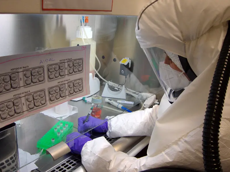Foto portada: Una investigadora trabaja en el laboratorio de contención biológica del CBM-CSIC-UAM. / CBM-CSIC-UAM