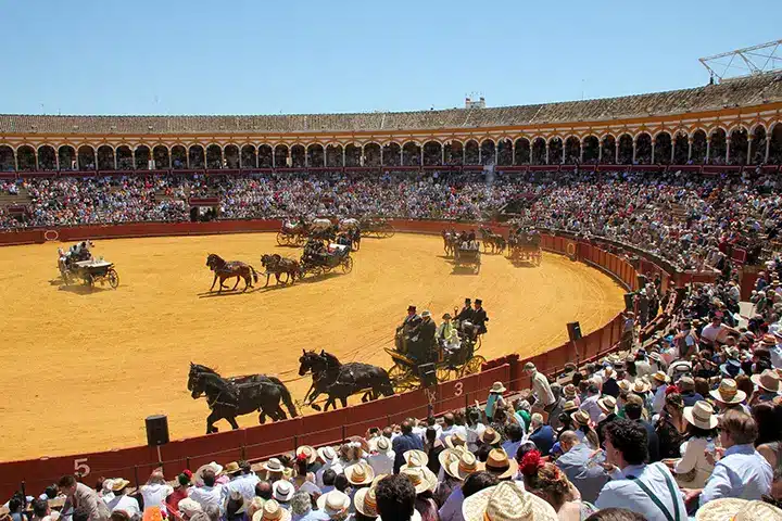 Sevilla se volvió a rendir ante la belleza y la majestuosidad de los enganches en la Real Maestranza en una mañana calurosa de Domingo de Feria en la que el calor fue uno de los protagonistas ya que a las doce del mediodía, los abanicos no paraban de moverse en los tendidos y las gradas del coso. Tanto la Plaza como sus alrededores estuvieron repletos de público para contemplar los 94 carruajes que participaban en esta edición.