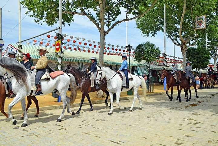 La Feria de Sevilla también se ha hecho famosa por su desfile de caballos. Cada día, jinetes elegantemente vestidos y sus caballos recorren las calles de la ciudad, creando un ambiente majestuoso. Los caballos andaluces , famosos por su belleza y gracia, son una verdadera atracción y parte integrante de la tradición de la feria.