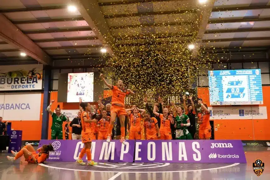El conjunto femenino del Pescados Rubén Burela ya es hexacampeón de Liga después de vencer anoche al Futsi Atlético Navalcarnero por 4-0 en un tercer partido en el que un enfervorecido Vista Alegre llevó en volandas al conjunto mariñano hacia la victoria. Con este sexto título liguero, la entidad burelista iguala en lo alto del palmarés de la competición con su rival en esta final y con el Femesala Elche. Además, el conjunto laranxa ha sumado 14 de los 16 títulos nacionales que se han disputado desde aquella Copa de la Reina vencida por las laranxas en Vista Alegre en el cierre de la temporada 2018/2019.