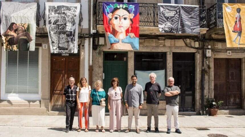 De fóra de España chegaron balconadas desde varios países de Europa e Sudamérica Estarán expostas ata o 31 de agosto nos balcóns das rúas do centro histórico, e a Dirección da Bienal resérvase a decisión de aumentar o tempo de exposición.