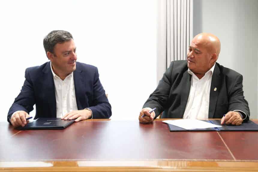 Valentín González Formoso e José Antonio Santiso Miramontes asinaron o convenio, que permite ofrecer asistencia xurídica a persoas derivadas polos servizos sociais de Abegondo, Bergondo, Betanzos, Cambre, Carral, Culleredo, Oleiros e Sada.
