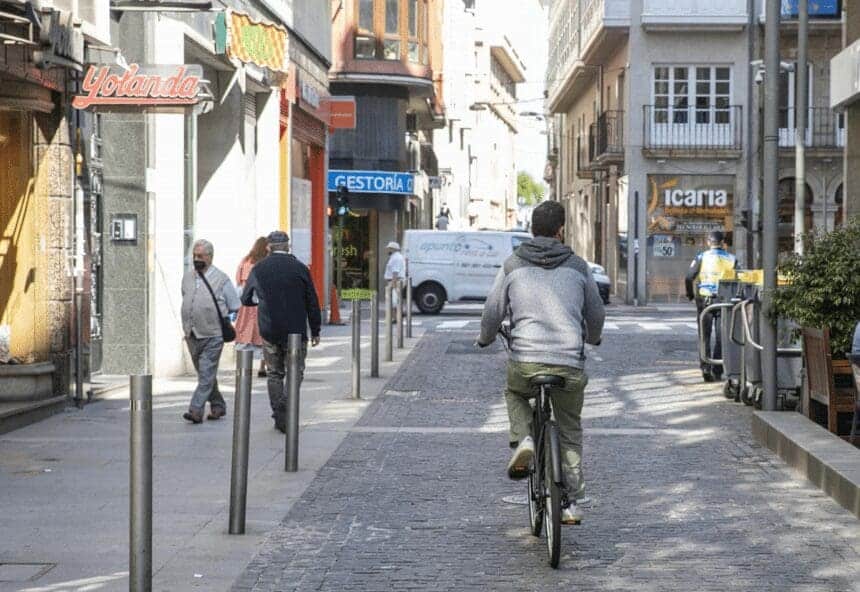 O percorrido ciclista pola rúa Nova, ata o cruzamento con San Andrés, estará delimitado sobre o propio pavimento de adoquín, coa correspondente sinalización horizontal.