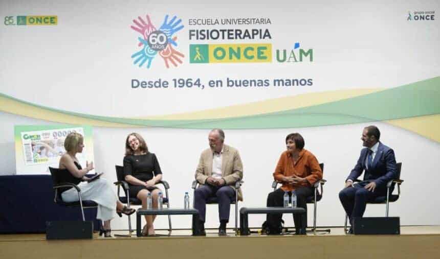 Miguel Carballeda, presidente del Grupo Social ONCE; Amaya Mendicoechea, rectora de la Universidad Autónoma de Madrid; Andrés Ramos, director general adjunto de Servicios Sociales para Personas Afiliadas a la ONCE; Mª Pilar López, decana de la Facultad de Medicina de la Universidad Autónoma de Madrid; y Ana Varas, directora de la Escuela Universitaria de Fisioterapia de la ONCE, han inaugurado esta exposición, con una visita guiada por la misma, junto con un evento en el que han participado antiguos alumnos y alumnas, profesores, investigadores y personal que ha pasado por la Escuela en las últimas seis décadas logrando un cambio desde el hándicap inicial a la excelencia actual.