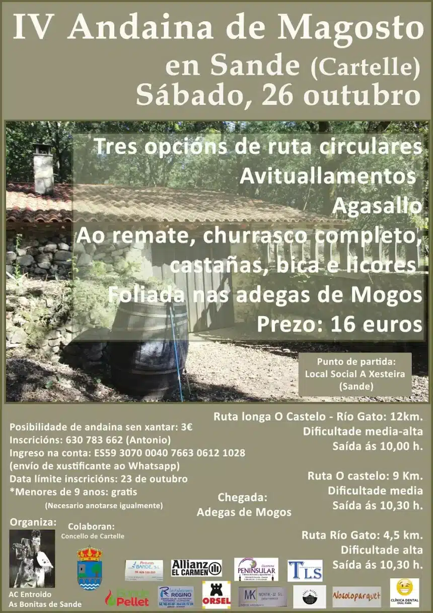 OURENSECartelleIV Andaina de Magosto en Sande, Cartelle por Redacción Ourense Publicado 15/10/2024 Comparte Comparte Un ano máis a Asociación Cultural Entroido As Bonitas de Sande pon en marcha a súa Andaina de Magosto que acada este ano a cuarta edición EtiquetasandainacartelleMagosto Comparte éste artículo Facebook Whatsapp Whatsapp LinkedIn Telegram Copy Link Comparte No hay comentarios No hay comentarios Deja una respuesta Cancelar la respuestaTu dirección de correo electrónico no será publicada. Los campos obligatorios están marcados con *Comentario *Nombre * Correo electrónico * Web Guarda mi nombre, correo electrónico y web en este navegador para la próxima vez que comente.