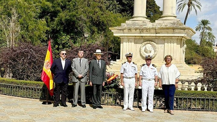 Delante de su monumento, dos instituciones organizaron un homenaje al descubridor: el Ateneo Social y Castrense de Sevilla y la Real Liga Naval Española, con la colaboración de la Hermandad de Veteranos del Regimiento Soria 9.