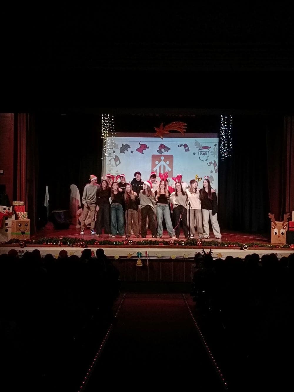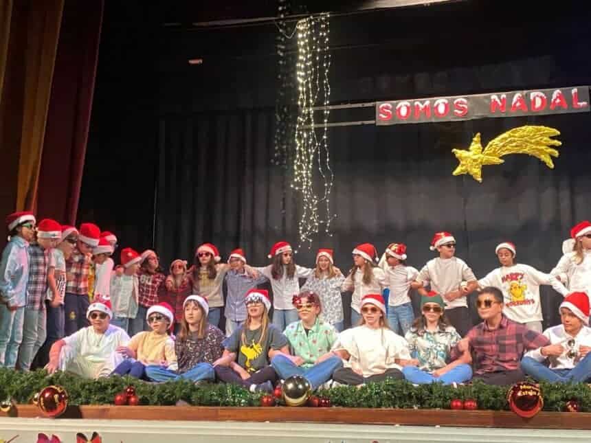 El día grande, el viernes 20, inició con una celebración en la iglesia para el alumnado de Secundaria y Bachillerato, que incluyó una original visita en el tiempo a través de una “máquina del futuro”. Mientras tanto, los más pequeños disfrutaron cantando villancicos en la escuela infantil Zalaeta y Teranga, y el alumnado de Primaria tuvo una sesión de cine en el teatro del colegio. La jornada matinal culminó con un divertido festival de villancicos para los alumnos de Secundaria y Bachillerato, donde no faltaron el humor, la interacción con el público y las tradicionales panxoliñas.
