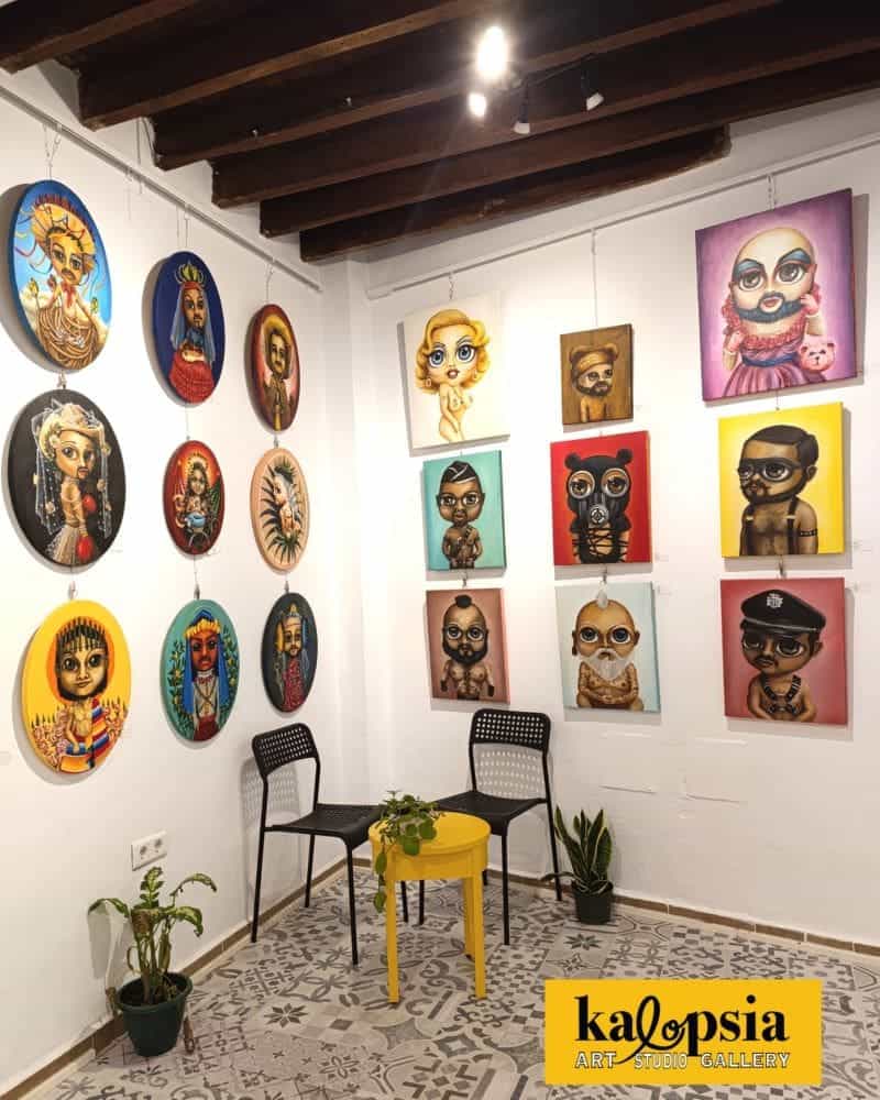 Kalopsia, es una palabra griega – explica Hermoso- que significa la ilusión de ver las cosas más bonitas de lo que en realidad son. «Es una definición perfecta para un espacio que muestra arte. Al abrir este espacio me imaginaba un estudio abierto a los visitantes, con espacio suficiente para estar pintando y a la vez tener mi obra colgada. Un lugar donde atender las citas y charlar de arte con clientes o compañeros artistas. Cuando abrí las puertas de Kalopsia me sentí como en casa, y supe que este era mi sitio».