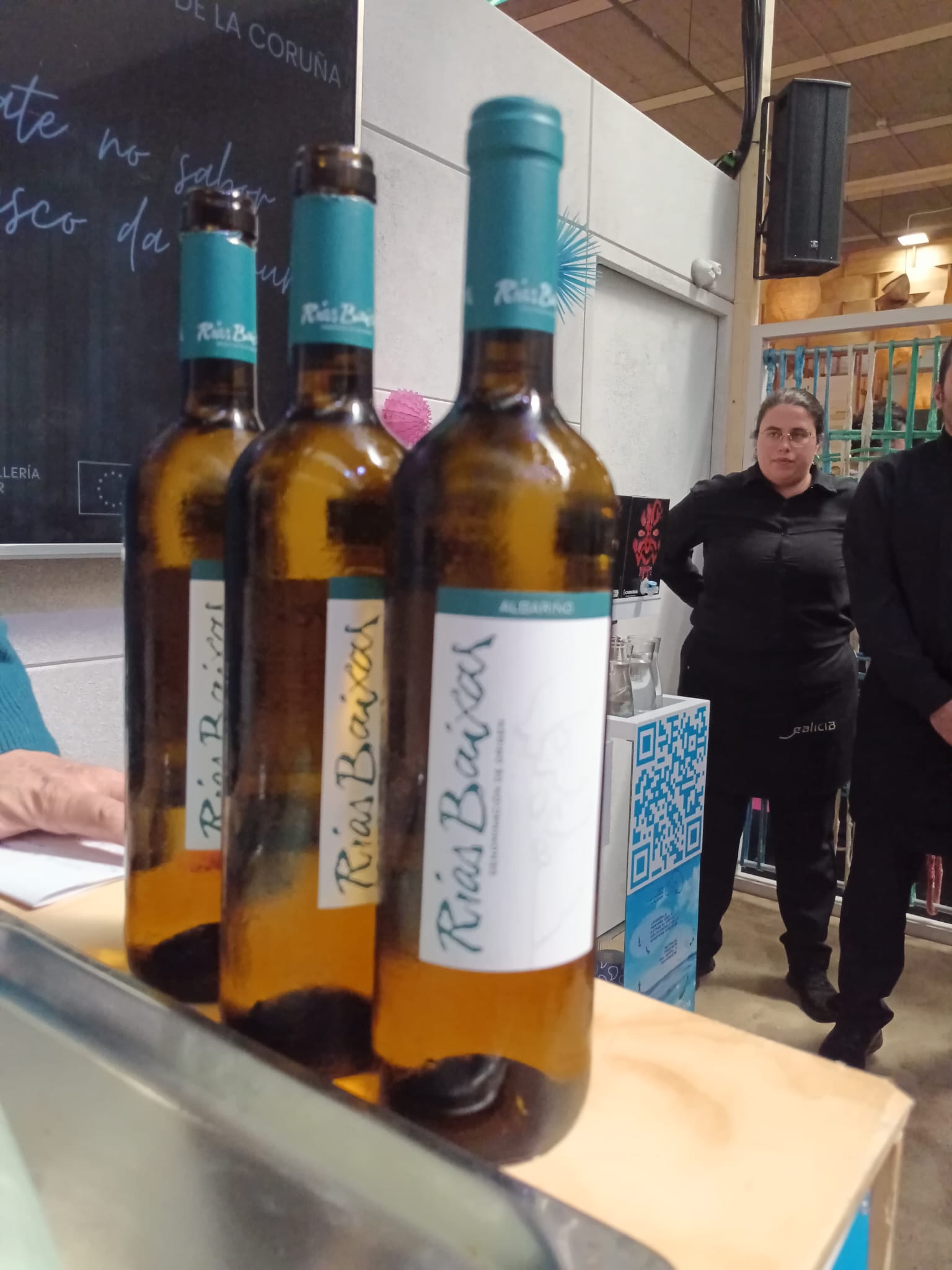 Por orden de aparición, tras la entrada al recinto, justo en las puertas del mismo, tuvimos la suerte de disponer del famoso «túnel de vinos y licores» en donde la Xunta de Galicia ofrecía gratuitamente la degustación de los mejores vinos de Galicia, tintos de Amandi de la Ribeira Sacra, mencías, como godellos blancos y albariños de nominación Rías Baixas y licores de aguardientes y otras maravillas de alambique, que podíamos libar con profusión y a discreción.