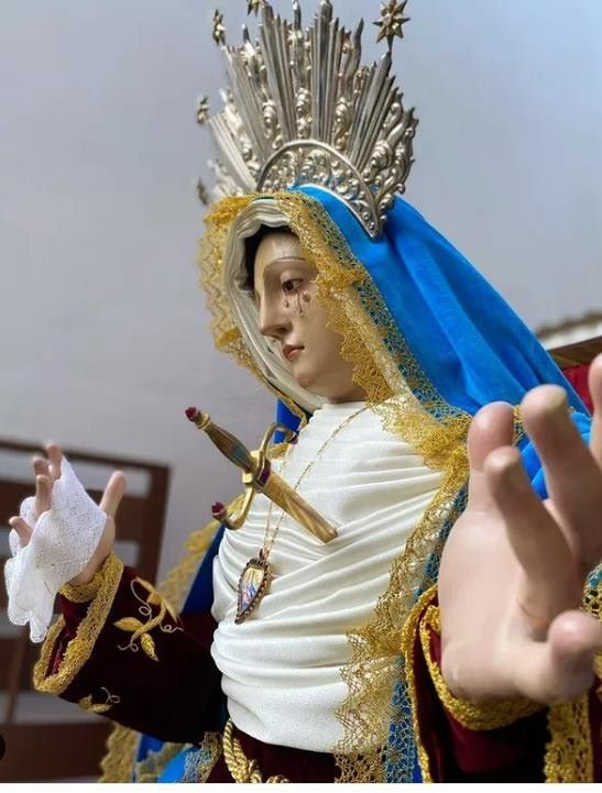 cosas, tras cada dolor de la Virgen se reza un Padre nuestro y siete Avemarías. Se hace también con algo parecido a un rosario, pero con siete dolores y siete cuentas cada uno.