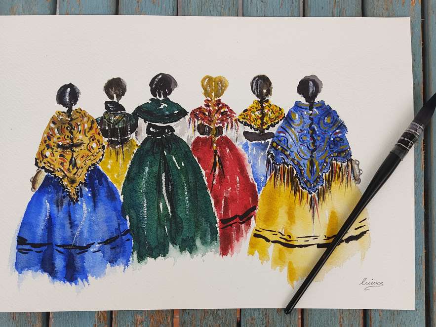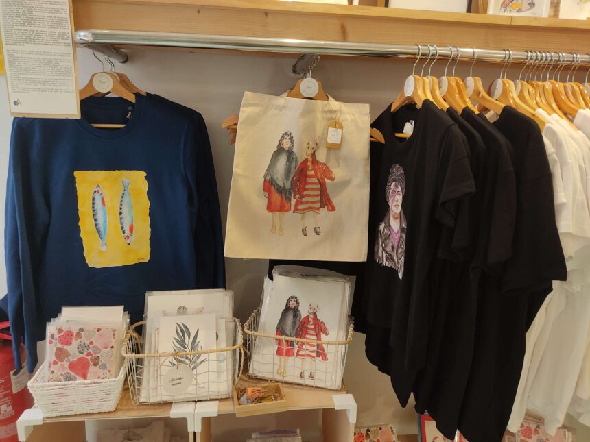 Los asistentes pudieron encontrar en este market acuarelas originales, láminas, postales, camisetas, sudaderas o tote bags con los diseños de la firma, fundada por Sandra Cuiña hace un año, que intenta reflejar en sus trabajos su amor por Galicia y sus tradiciones. Entre sus diseños más populares están sus láminas, camisetas y tote bags de las Marías, que están estampadas con una ilustración de las Dos en Punto realizada originalmente a mano alzada en acuarela. También quiso darle una vuelta a Maruxa y Coralia y creó su versión 2.0 de las Marías, donde refleja cómo serían para ella las Dos en Punto si vivieran hoy en día.