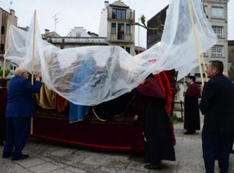 Cangas continúa inmerso en los actos de celebración de la Semana Santa. Ya se celebraron los actos del pasado viernes, la festividad de la Virgen de los Dolores, aunque sin procesión y, en toda su plenitud, el Domingo de Ramos. En el día de ayer, bajo la atenta mirada de los miembros de la Hermandad de la Virgen de los Dolores y Soledad, se pretendía procesionar por las calles de esta villa marinera la imagen de la Soledad de María, pero un gran número de fieles y asistentes tuvieron que resignarse porque el tiempo no aconsejaron ningún tipo de celebración al aire libre.