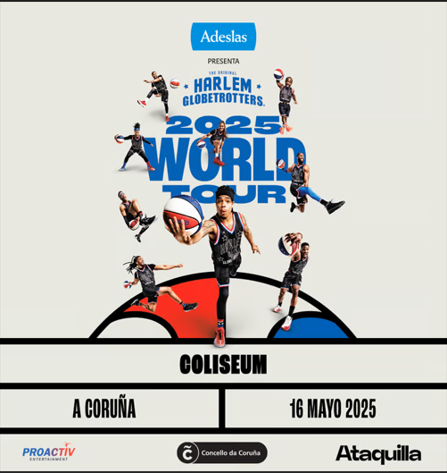 Los Harlem Globetrotters vuelven a España en 2025 como parte de su gira global y A Coruña será una de las ciudades que albergarán un show vertiginoso, lleno de magia, acrobacias y canastas inverosímiles. Concretamente, el día 16 de mayo, a partir de las 19:30 horas, el Coliseum será el escenario de una cita tan especial. Las otras sedes ya confirmadas que tendrán la oportunidad de ver en directo el baloncesto más espectacular del mundo serán Menorca, Madrid, Bilbao, Tenerife, Las Palmas de Gran Canaria, Sevilla, Málaga, Girona, Valencia y Barcelona. Las entradas para todos estos shows están disponibles en Mitaquilla.com y puntos de venta habituales. ¡No te quedes sin ellas!