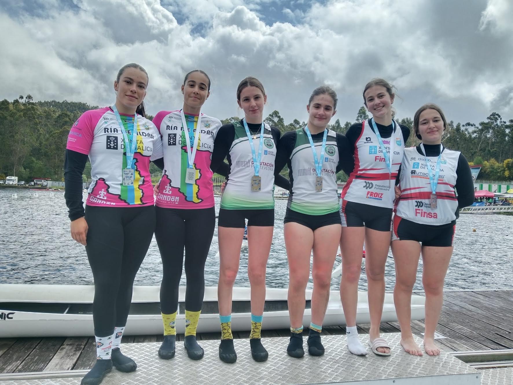 En K4 cadete femenino 500 metros, el oro fue para Marina Calvar, Carla Corrales, Sabela González e Iria Guimarey, del Club Náutico de Cobres, con 1:50.96. La plata se la llevaron Candela Alonso, Lara Martínez, Xulia Paramos y África Correa, del Club Kayak Tudense, y el bronce fue para Sara Burgos, Sabela Márquez, Aisha Rey y Uxía Martínez, del Club Cofradía Pescadores Portonovo.
