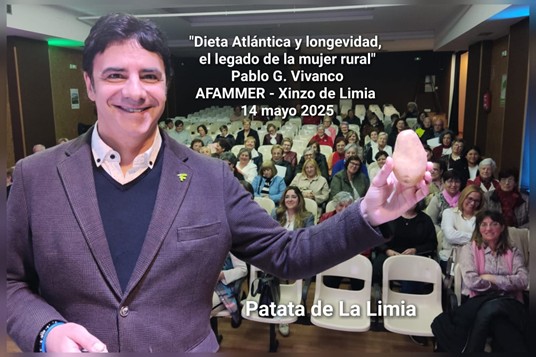 La semana pasada se celebró en Xinzo una jornada organizada con la asociación de familias y mujeres rurales, Afammer y con la colaboración de la Escola Rural de Saúde da Limia, en la que se puso en valor del trabajo de la mujer rural y su papel importante en la custodia de los alimentos de proximidad y de nuestras costumbres. En su intervención, el farmacéutico y nutricionista Pablo García Vivanco, hizo un alegato sobre las propiedades nutricionales de las patatas, algo que ya adelantó en sus publicaciones científicas.