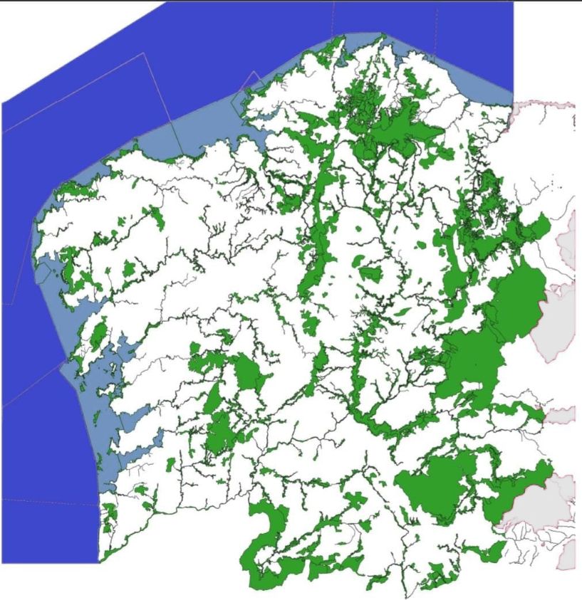 Foto portada: Mapa da proposta de ampliación da Rede Natura 2000 ao 28% do territorio galego.