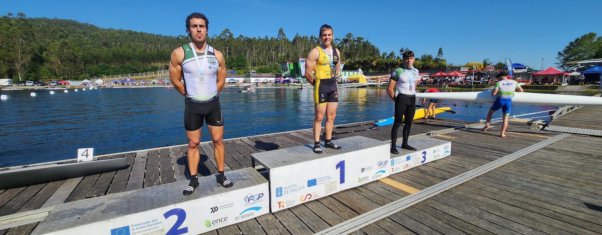 Entre los juveniles, Raúl Fernández Busto (As Torres Romería Vikinga) brilló con luz propia al adjudicarse el oro en C1 200 y 500 metros, compartiendo podio con Alejandro Pérez Pérez (bronce en 200 m) y Héctor Vázquez Ferreira (plata en 500 m), ambos del Fluvial de Lugo. En K1 500 metros, Borja López González (CN Firrete) subió a lo más alto del cajón.