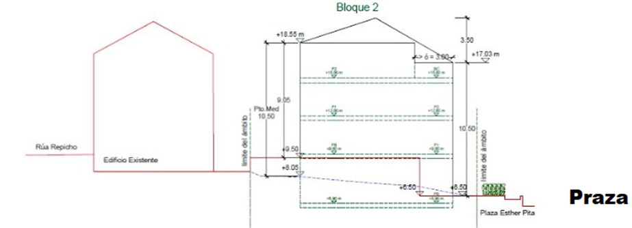 (Sacado do Proxecto). Á esquerda Rúa Repicho e a dereita sección do edificio 2.![]()