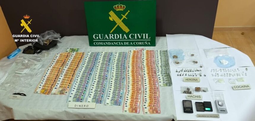 La Guardia Civil, en el marco de la Operación “REGUEIRO”, ha desmantelado una importante red de tráfico minorista de drogas en Boiro (A Coruña) con la detención de dos personas y la intervención de 613 dosis de diversas sustancias estupefacientes.