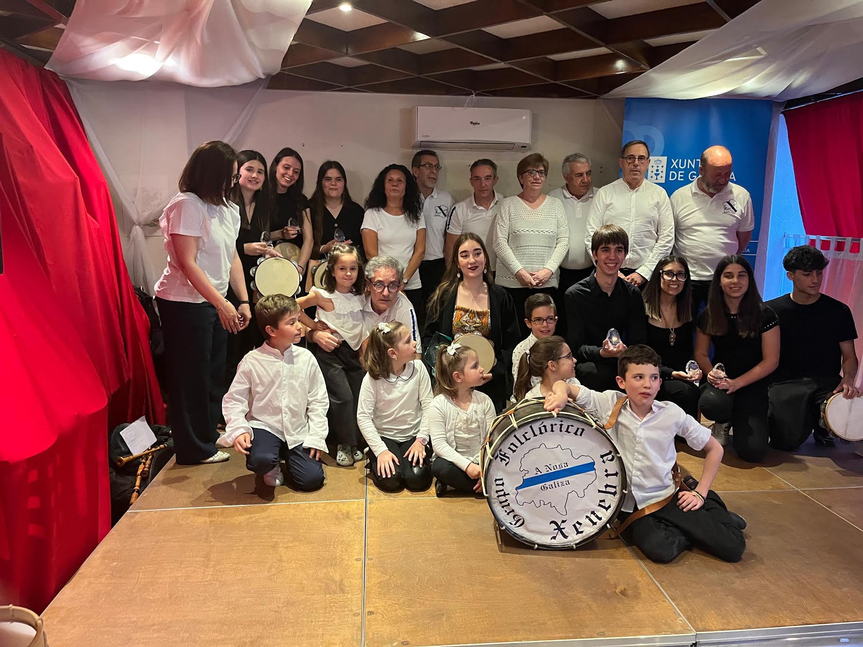 La parte artística de la celebración estuvo protagonizada por dos grupos de gran talento y pasión por la cultura gallega. Por un lado, actuó el grupo anfitrión de A Nosa Galiza, acompañado a la gaita por el músico