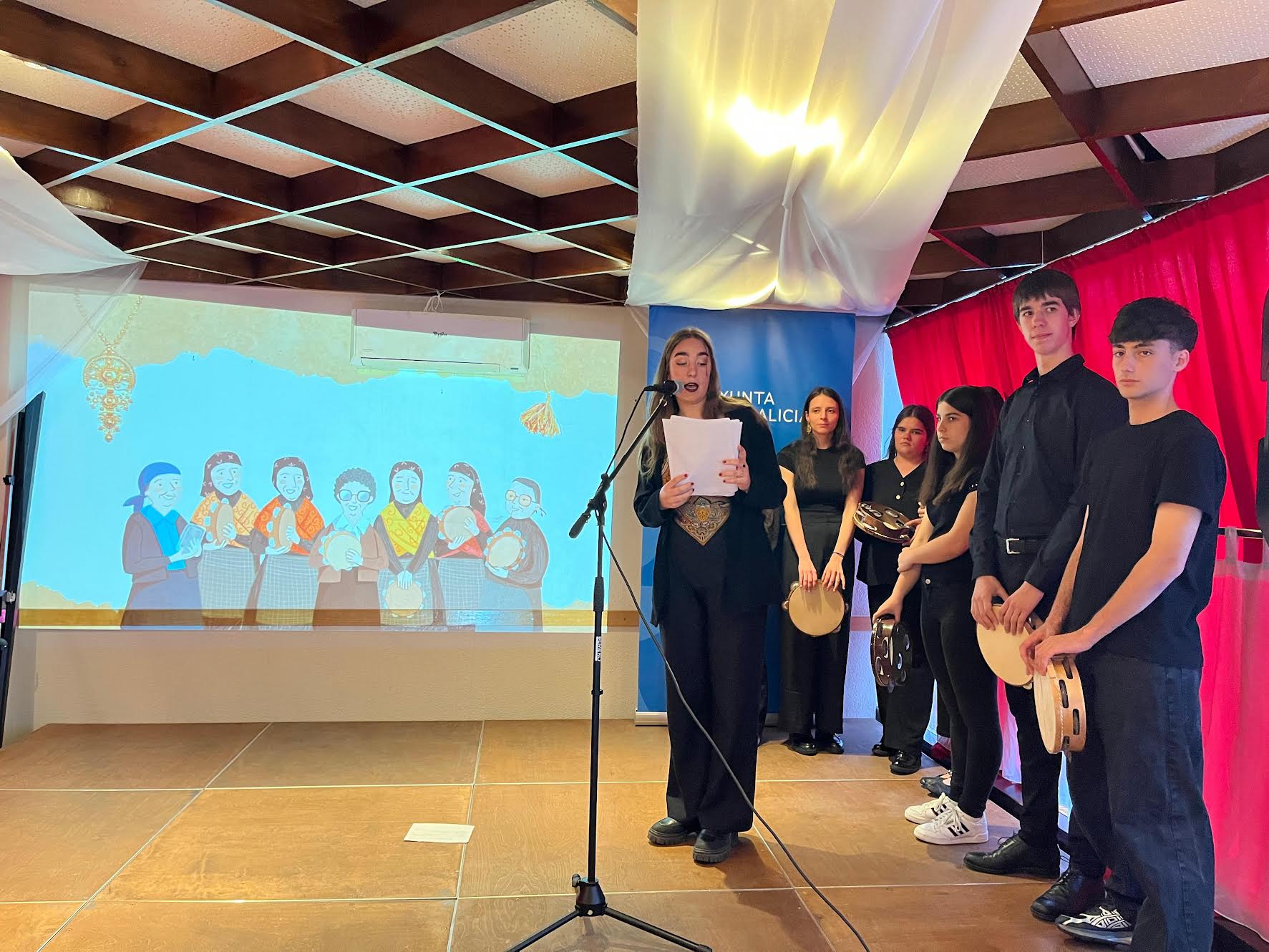 La jornada comenzó con una charla-conferencia que contextualizó la importancia de esta efeméride y puso en valor el papel de las mujeres gallegas en la transmisión de la tradición oral. Este año, A Nosa Galiza quiso rendir homenaje a esas mujeres anónimas que, a lo largo del tiempo, mantuvieron viva la riqueza del folclore gallego a través del canto, la pandereta y otros instrumentos tradicionales. Ellas han sido las verdaderas guardianas de un legado cultural que, gracias a su empeño, sigue vigente y reconocido.