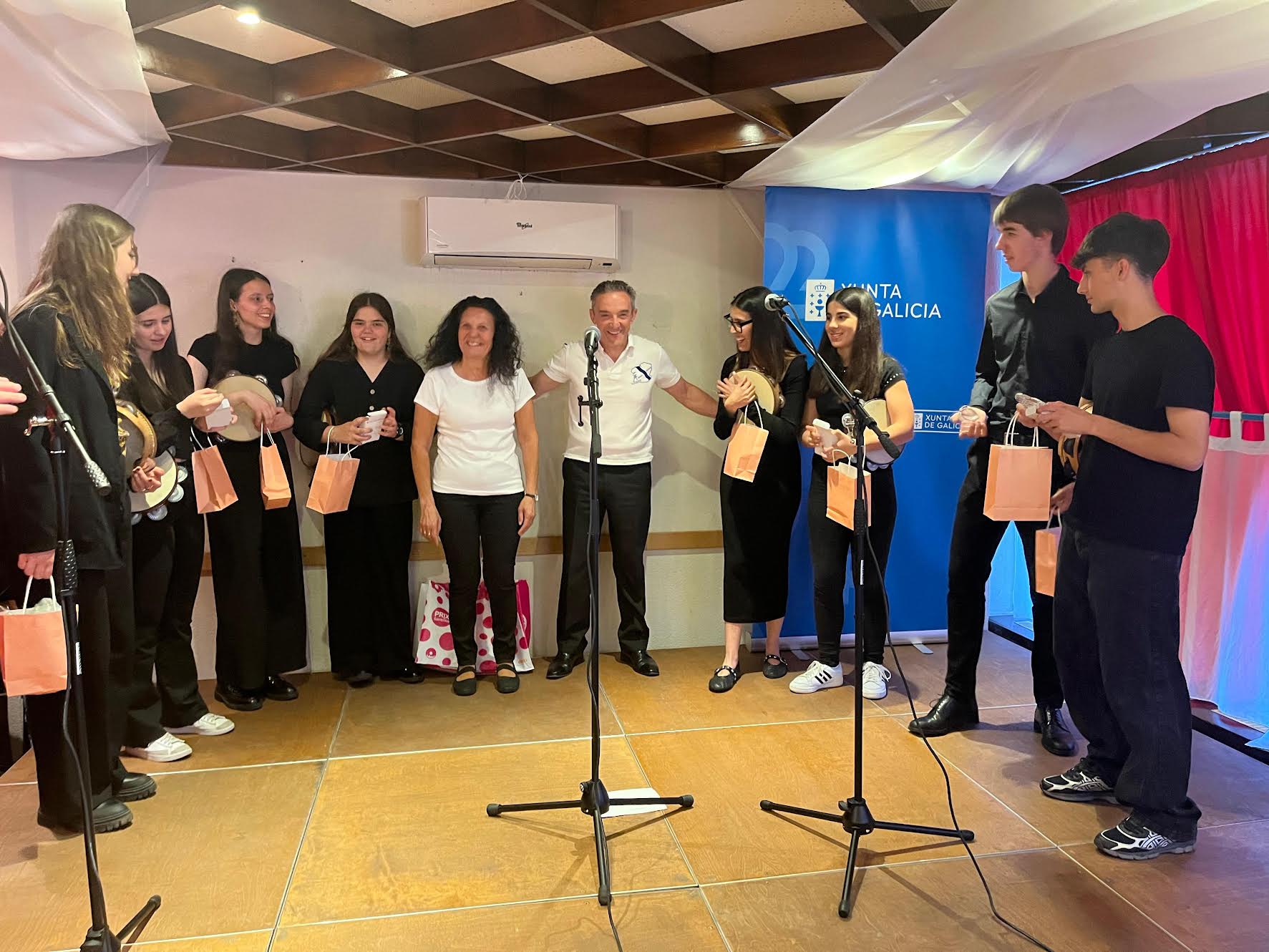 Galicia, donde colabora en tertulias sobre temas de actualidad y en pequeños sketchs humorísticos. Su presencia aportó una dimensión más amplia al acto, combinando la interpretación musical con una