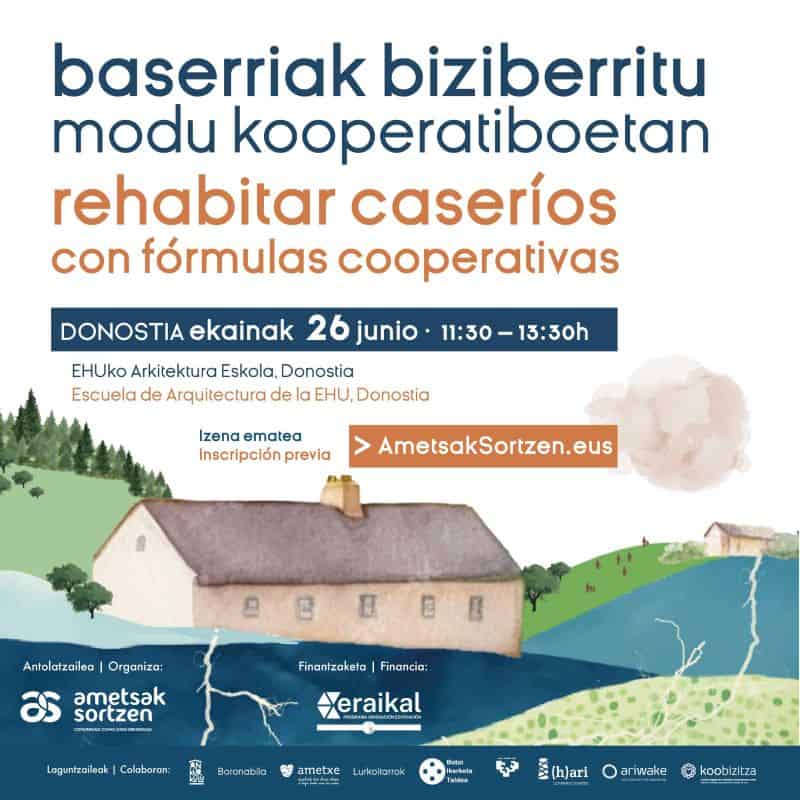 El próximo jueves 26 de junio, de 11:30 a 13:30h, la Escuela de Arquitectura de la EHU-UPV en Donostia (Sala Aupa, Espacio Habic) acogerá la jornada de presentación pública de una investigación inédita en Euskadi: un estudio sobre la vivienda cooperativa en cesión de uso en el medio rural de la Comunidad Autónoma Vasca.