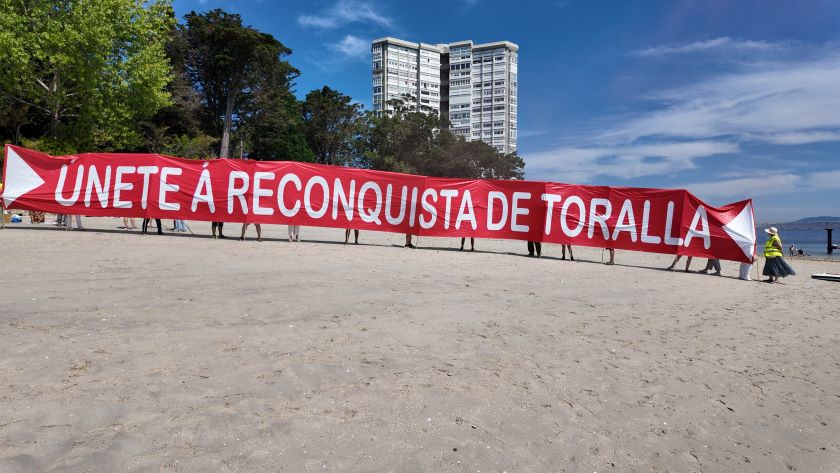 Ao arribar a orilla da illa de Toralla as manifestantes despregaron unha pancarta de vinte metros de longo na que se podía ler «Únete á reconquista de Toralla», un convite á cidadanía viguesa para que reclame a illa para a cidade. Seguidamente, voceiros das asociacións veciñais leron un manifesto e colocouse unha bandeira de Vigo para simbolizar a Reconquista.