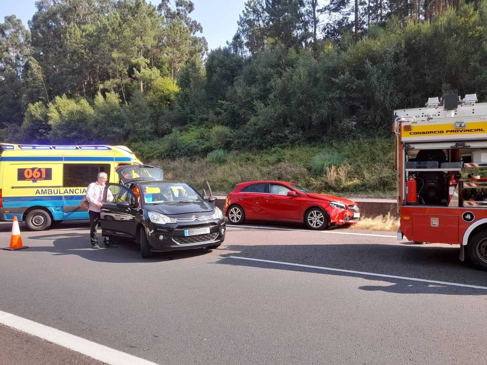 El siniestro implicó tres vehículos y provocó que una persona quedara atrapada en el interior de uno de los turismos, siendo necesaria su excarcelación por parte de los bomberos. El herido excarcelado, fue llevado al CHUAC en ambulancia medicalizada y las otras dos evacuadas al Hospital Arquitecto Marcide de Ferrol.