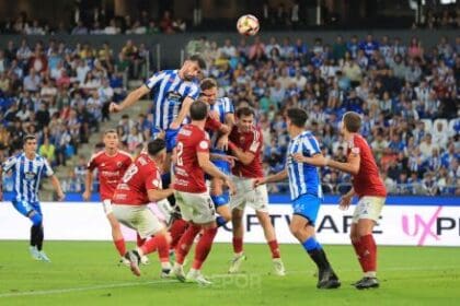 El partido se equilibró, empezó a jugarse en la franja central y no pasaron más cosas hasta el minuto 38, en otro centro de Älvaro Juan, esta vez desde la línea de fondo, que remató Jairo sin puntería.
