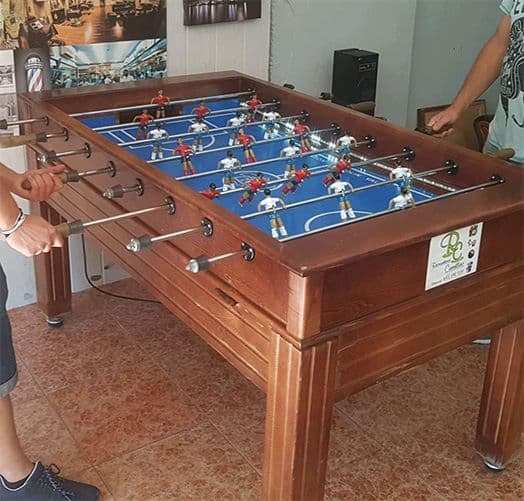 Era un local pequeño, sin lujos. Pero dentro se levantaba una catedral hecha de futbolines, cinco o seis como mucho, alineados uno al lado del otro. No importaba que fuese tarde, que lloviese o que hiciera frío: los críos llegaban con los bolsillos llenos de monedas, las manos nerviosas y esa impaciencia de quien sabe que el turno puede tardar una eternidad. Poner la ficha era un acto solemne: la moneda entraba y la bola caía con un golpe seco, como un trueno que anunciaba que la batalla empezaba.