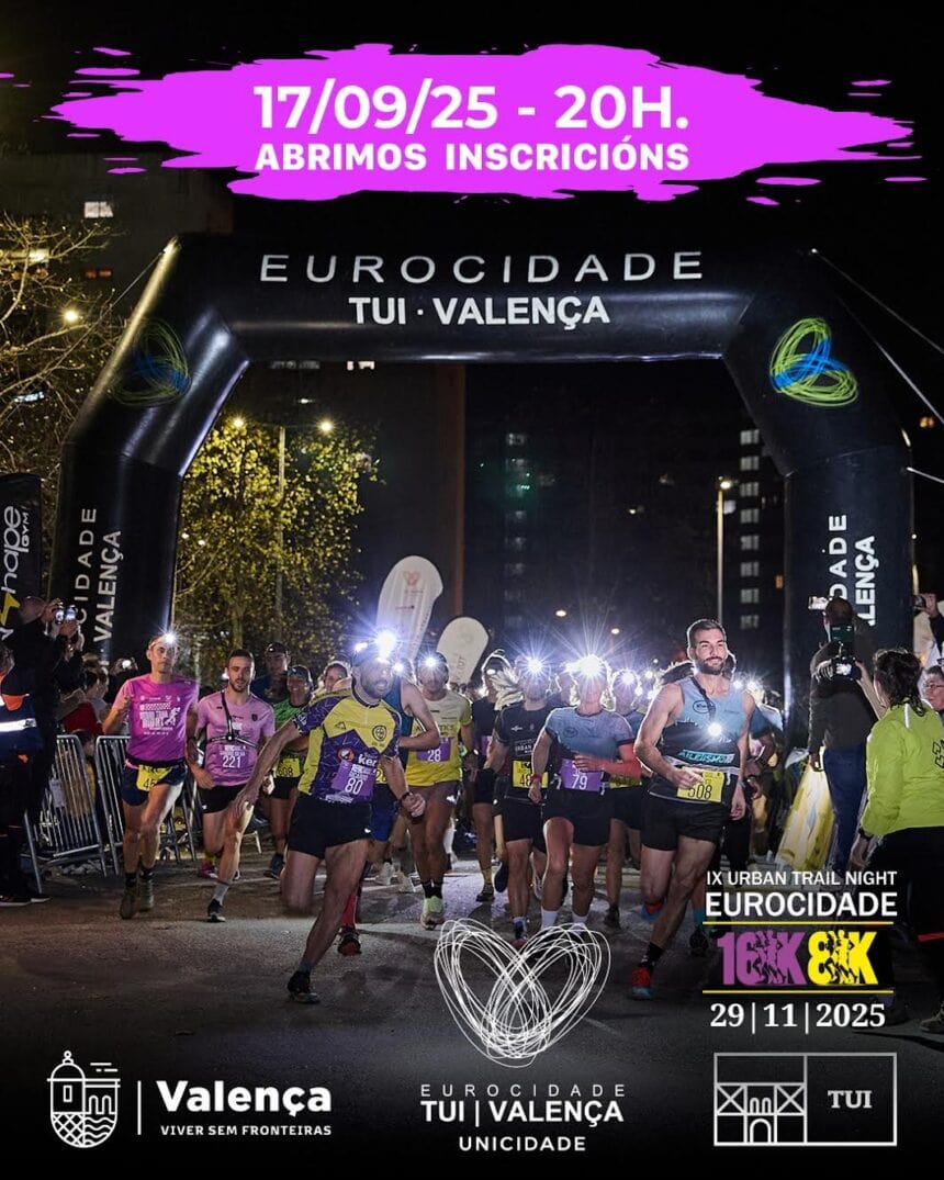 A nona edição da Urban Trail Night Eurocidade Valença – Tui, agendada para 29 de novembro, já abriu as inscrições em https://urbantrailnight.com/.