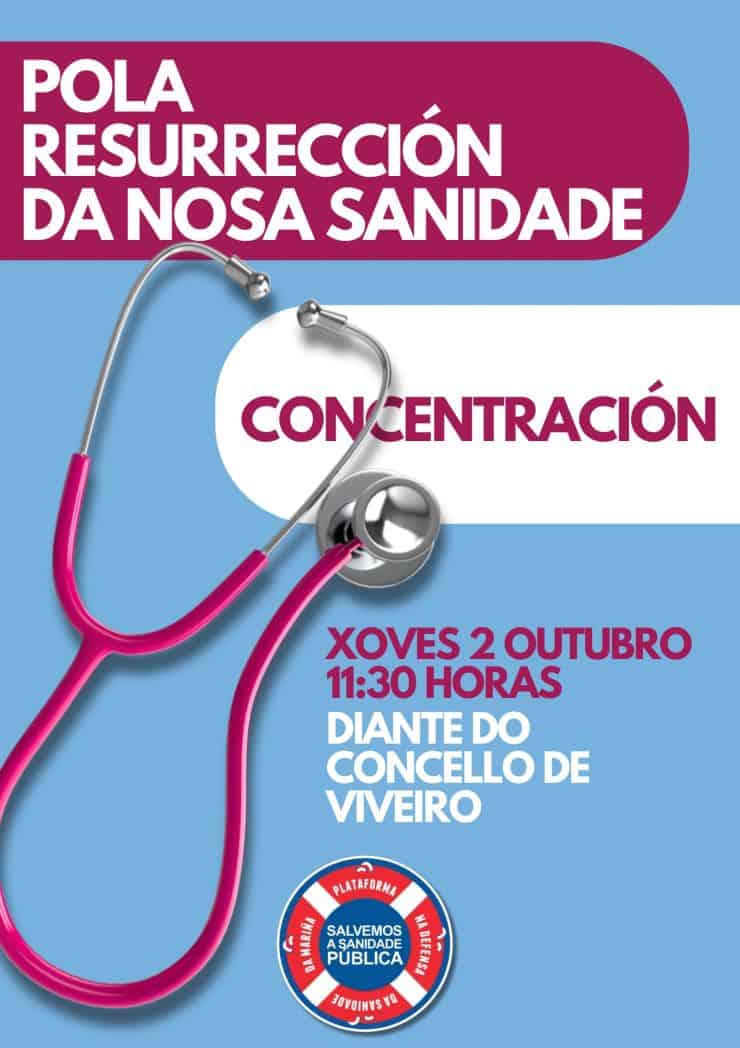 A Plataforma Sanitaria na Defensa da Sanidade Pública da Mariña mantén a súa convocatoria de mobilización quincenal contra a crise de persoal na comarca. A próxima concentración terá lugar o xoves 2 de outubro ás 11:30 horas, e cambia a súa ubicación á Praza do Concello de Viveiro, buscando o centro neurálxico da vida social.