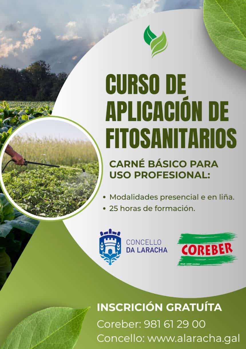 A cooperativa Coreber, con sede na parroquia de Montemaior, porá en marcha a finais de outubro e en novembro cursos formativos dirixidos á obtención do carné básico para a aplicación de produtos fitosanitarios para uso profesional. O Concello colabora con esta iniciativa que procura dar resposta á crecente demanda nesta capacitación.
