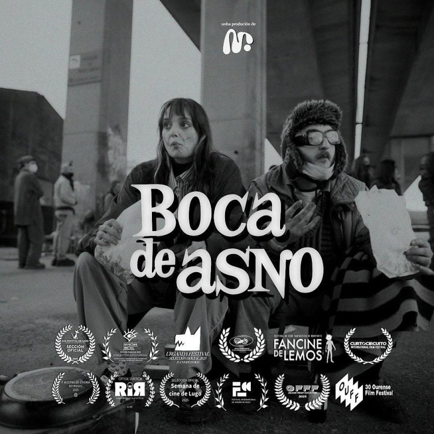 El cortometraje Boca de Asno, dirigido por Carlos Calvar y distribuido por Brava, ha sido galardonado con una Mención Especial en la Sección Oficial de Cortometrajes del 30o Festival de Cine de Ourense (OUFF) consolidándose como uno de los cortometrajes del año en Galicia, con una trayectoria y reconocimientos que lo ponen entre los favoritos para competir por el Premio Mestre Mateo 2026 de la Academia Galega do Audiovisual. La película ha sido reconocida en Ourense, en una sección muy competida con gran nivel de producción, por su originalidad y su capacidad para combinar humor negro, surrealismo y reflexiones sobre la cotidianidad.