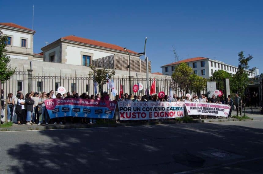 Despois da concentración celebrada o 17 de setembro diante da Consellaría de Política Social e de que a súa titular, Fabiola García, siga sen recibir a unha representación do persoal destes tres sectores, que suman máis de 5.0000 traballadores e traballadoras distribuídos en máis de 500 centros por todo o país, comeza un calendario de mobilizacións que irán intensificándose se non hai unha resposta por parte da administración. A CIG-Ensino, sindicato maioritario nos tres, lembra que o convenio galego é a única garantía de mellora real nas condicións laborais e salariais deste persoal, moito del aínda por debaixo do SMI e sen apenas dereitos laborais por riba dos regulados no Estatuto dos Traballadores, pero que realiza un servizo social esencial. Os convenios estatais non supoñen ningún avance e o feito de que prevalezan os autonómicos sobre estes obrigaría á Xunta a realizar as subcontratacións dos servizos adaptándose ao acordado neste últimos.